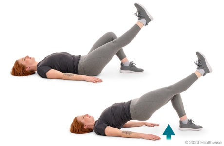 Here are some examples of exercises for you to try. The exercises may be suggested for a condition or for rehabilitation. Start each exercise slowly. Ease off the exercises if you start to have pain.