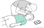 8. Keep giving sets of 30 compressions and 2 rescue breaths until help arrives, the child is breathing normally, or an AED is ready to use.