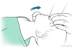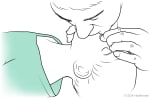 6. Blow one breath into the child’s mouth. Let the chest fall and give a second breath.