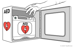Automated external defibrillators (AEDs) are in many public places. Before you use an AED, follow all the steps for CPR.