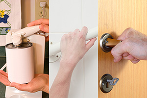 These tools make objects such as keys, silverware, kitchen pots and pans, combs, and toothbrushes easier to hold.