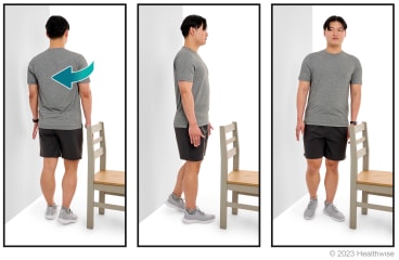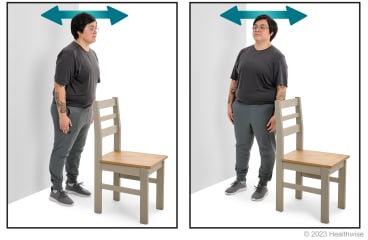 - Stand with a chair in front of you and a wall behind you. If you begin to fall, you can use them for support.
