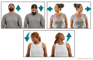 - Move your head diagonally up and down 10 times on the other side.