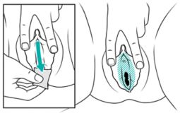 2. Clean your genitals with the provided wipes. If you have a vulva, hold the folds of skin or lips (labia) apart. Wipe the area from front to back.