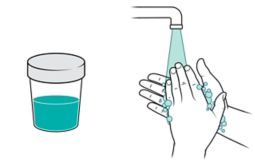 5. After the urine has flowed for several seconds, place the collection container in the stream. Collect about 2 ounces (a quarter cup). Don't touch the container to your genitals. Finish urinating into the toilet.