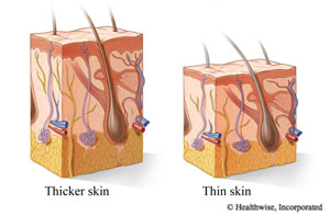 Watch for problems from thinning skin.