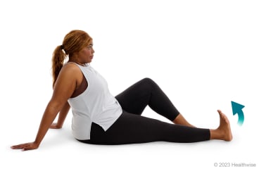 - Keeping your affected leg straight, gently flex your foot downward so your toes are pointed away from your body. Then slowly relax your foot to the starting position.