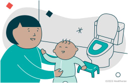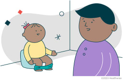 To get your child ready to potty train, give them their own little potty. Or you could get a child-sized toilet seat that fits over your toilet.