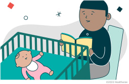 Read books to your baby daily. And give your baby brightly colored toys to hold and look at.