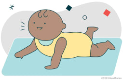 They may use their voice to make new sounds. And they may start to scoot or crawl when lying on their tummy.
