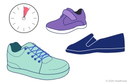 Wear shoes that fit well. Look for shoes that have plenty of space around the toes. Always wear socks with your shoes.