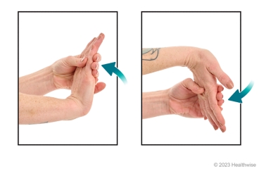 - With your other hand, gently bend your wrist farther until you feel a mild to moderate stretch in your forearm.