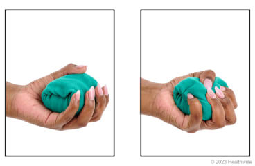 - Make a fist around the ball or sock and squeeze.