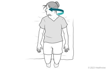 Turn your head halfway to the other side (about 45 degrees). This will be the side that has the least vertigo. Hold for at least 20 seconds or until your doctor says you should stop.