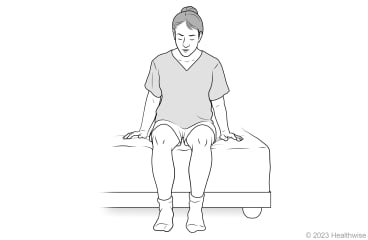 Keeping your head turned about halfway toward your shoulder, roll onto the side that causes the least vertigo. Your face should now be pointing toward the floor. Hold for at least 20 seconds. Then slowly push yourself up to a sitting position. Your doctor may have you repeat the whole series of movements until the vertigo is gone.