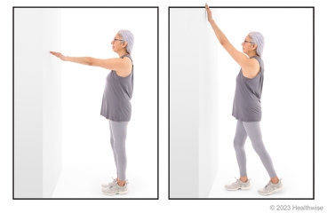 - Keeping your shoulder down (don't shrug), walk the fingers of your affected arm up the wall as high as pain permits.