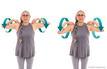- Roll your shoulders up, then back, then down, then forward in a smooth, circular motion.
