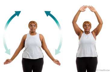 - Sweep both arms up to the sides as high as you can. Try not to shrug your shoulders.