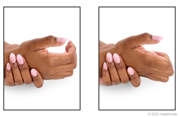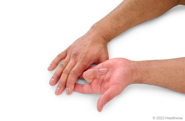 - Use the thumb and fingers of your good hand to grasp below the middle joint of your affected finger. This helps you hold that finger steady.