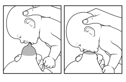 Help your baby latch. Touch your baby's lower lip with your nipple. Wait until your baby's mouth opens wide. Bring your baby quickly to your breast, and guide your breast into their mouth.