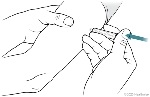 2. Insert the needle. Keeping your fingers off the plunger, hold the syringe like a pencil close to the site. Then insert the needle.