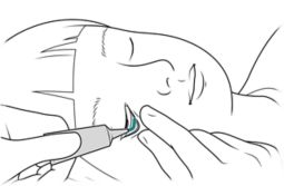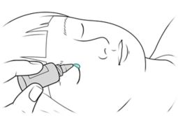Have your child lie down with their eyes closed. If you need to, hold your child gently but firmly.
