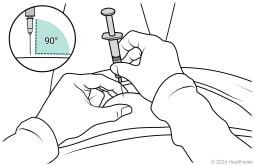 5. Place the syringe at a 90-degree angle to the shot site. The needle should stand straight up from the skin.
