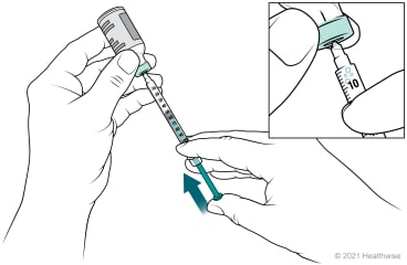 Push the air bubbles back into the bottle. Important: Make sure you have the correct number of units of insulin in your syringe.