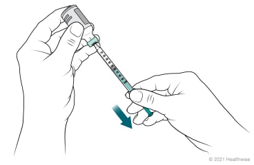 Pull the plunger of the syringe back and draw air into the syringe equal to the number of units of insulin to be given.