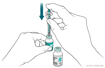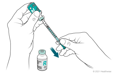 Pull the plunger of the syringe back and draw air into the syringe equal to the number of units of clear insulin to be given.