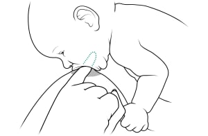 - Get the baby latched on well. Your baby's mouth needs to be wide open, like a yawn. So you may need to gently touch the middle of your baby's lower lip. When your baby's mouth is open wide, quickly bring the baby onto your nipple and areola. The areola is the dark circle around your nipple.