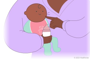 5. Do not prop the bottle in your baby's mouth or let them hold it alone until they are about 6 months old. Propping can lead to tooth decay.