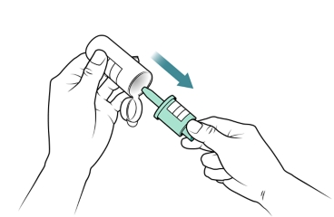 2. Remove the nasal spray device from the bottle. Don't push the plunger until you're ready to give the medicine.