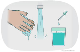 1. Wash your hands. Put the medicine into the medicine cup. Be sure to measure the right amount.