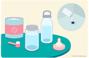 Follow the directions for preparing formula. Don't dilute the formula. Use the exact amount of water and formula the directions require. Use the formula within 2 hours of making it. Throw away any that's left in the bottle that you used to feed your baby.