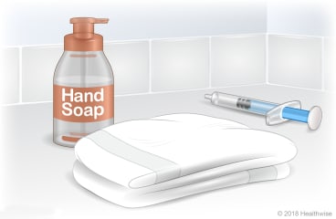 Before you remove your catheter, gather all of the supplies you will need, including the syringe and an absorbent pad. You will be given the same sized syringe that was used to inflate the balloon. Most syringes will be labeled 5 or 10 cc.