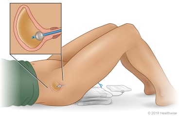 Lie down flat on your back. This may be more comfortable with your knees bent. Or you can be in a standing position or sitting on the toilet to remove the catheter, if that's comfortable.