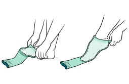 Next, from above your ankle, grasp the folded part of the stocking about 2 inches below the fold. Pull that section up.