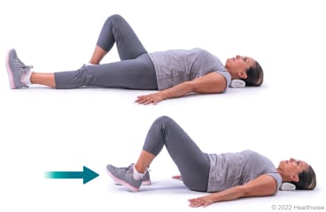 Here are some examples of exercises for you to try. The exercises may be suggested for a condition or for rehabilitation. Start each exercise slowly. Ease off the exercises if you start to have pain.