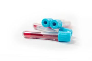 A health professional uses a needle to take a blood sample, usually from the arm.