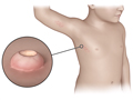 - A boil (abscess), similar to a large pimple. A boil may form when a hair follicle or the skin gets infected. A sweat gland abscess may form one or more lumps in the armpit that look like boils.