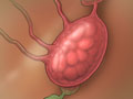 - A bulging section in the wall of a blood vessel (aneurysm) may feel like a throbbing lump in the belly, in the groin, or behind the knee. It can cause serious problems if it involves the blood vessels in the brain or the belly. Aneurysms may be a medical emergency and may require care right away.