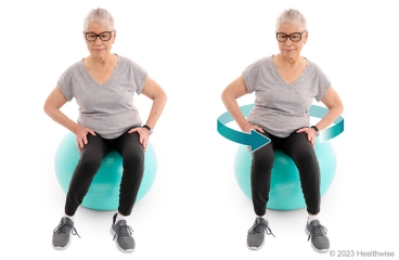 - Rest your hands on the ball near your hip or a steady object next to you. (If you feel very stable on the ball, rest your hands in your lap.)