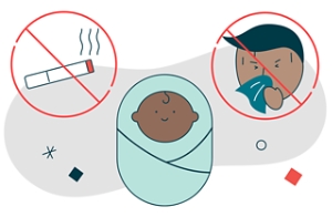 During the first 2 weeks after the birth, limit visitors. Don't allow visitors who have colds or infections. Ask visitors to wash their hands before they touch your baby. And never let anyone smoke around your baby.