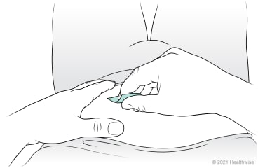 Slightly pinch a fold of skin between your fingers and thumb of one hand.